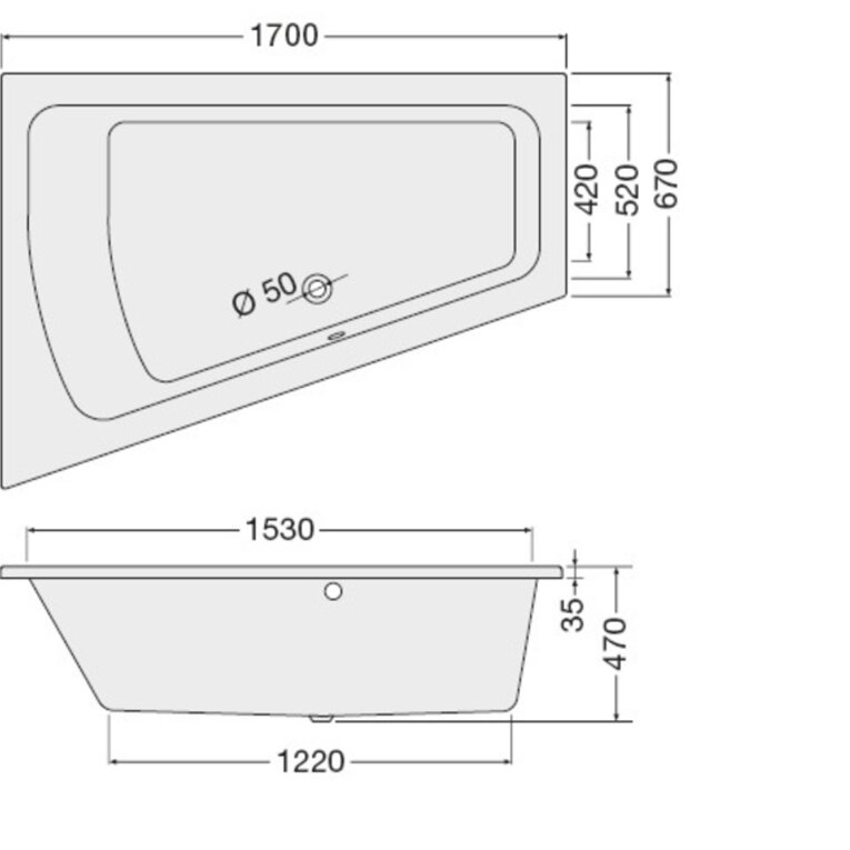 Raumspar-Badewanne Corinna 1700x1250x450mm links