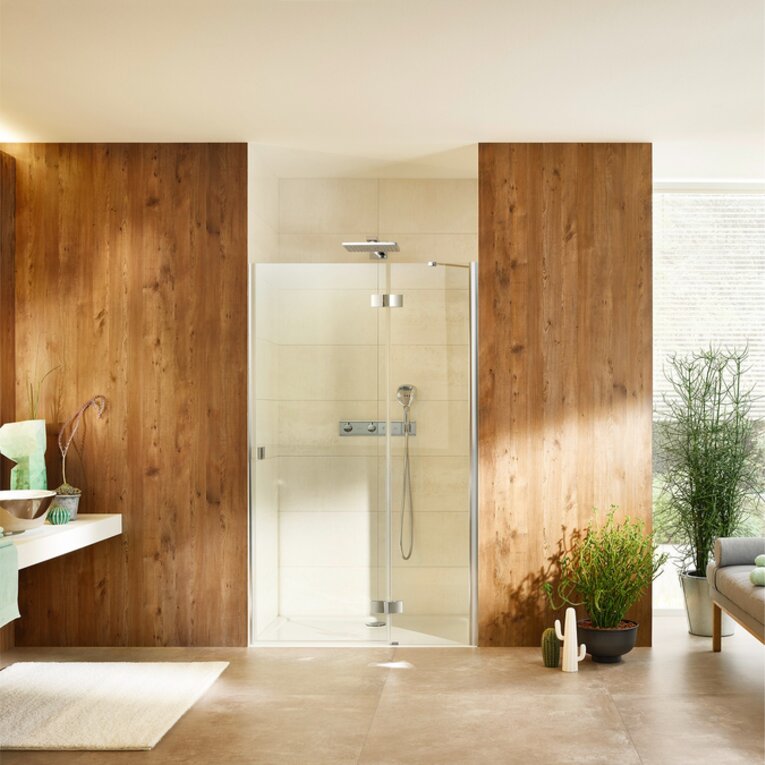 Die außen mit zertifizierter Klebtechnik verklebten Scharniere machen die Reinigung der Glasinnenseite besonders leicht. Einfach die durchlaufende Glasfläche nach dem Duschen mit einem Wischer abziehen oder - falls mit ARTCLEAR GLAS veredelt - nur abspülen.