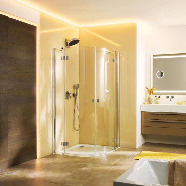 Die außen mit zertifizierter Klebtechnik verklebten Scharniere machen die Reinigung der Glasinnenseite besonders leicht. Einfach die durchlaufende Glasfläche nach dem Duschen mit einem Wischer abziehen oder - falls mit ARTCLEAR GLAS veredelt - nur abspülen.