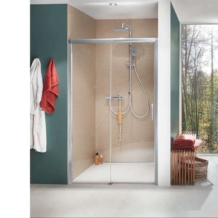 Exrtraschmal und aufs Maximum reduziert ist das patentierte Türführungs-System der MOVE. Besonders praktisch: Die Duschtüren sind mit Magneten fixiert und können zum Reinigen einfach weggeschwenkt werden.