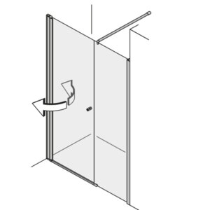 Modelle mit der Tür an einem Glas-Fixteil erlauben die Öffnung der Türe um 180° nach innen und 180° nach außen. Das ist einzigartig am Markt!  Modelle mit der Tür direkt an der Wand haben einen Öffnungswinkel von 90° nach innen und außen.