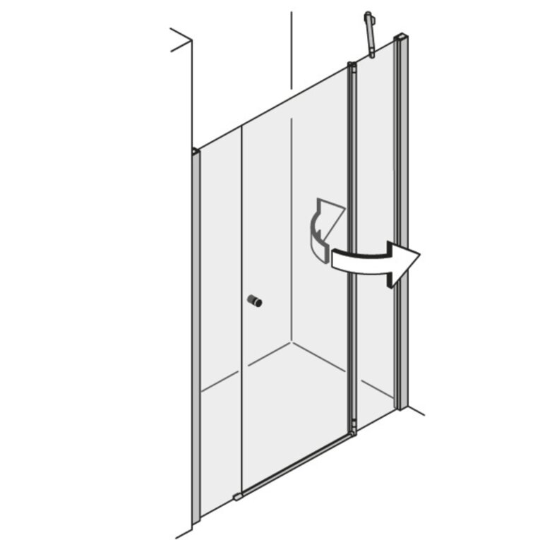 Modelle mit der Tür an einem Glas-Fixteil erlauben die Öffnung der Türe um 180° nach innen und 180° nach außen. Das ist einzigartig am Markt!  Modelle mit der Tür direkt an der Wand haben einen Öffnungswinkel von 90° nach innen und außen.