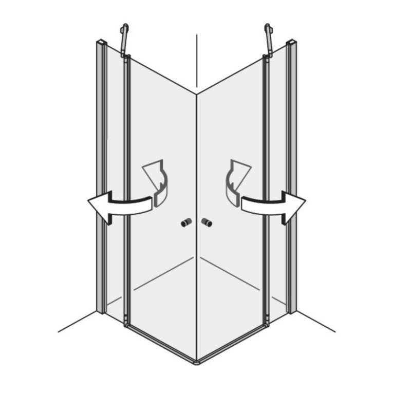 Modelle mit der Tür an einem Glas-Fixteil erlauben die Öffnung der Türe um 180° nach innen und 180° nach außen. Das ist einzigartig am Markt! Modelle mit der Tür direkt an der Wand haben einen Öffnungswinkel von 90° nach innen und außen.