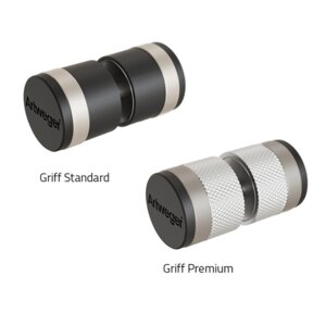 2 Griffvarianten stehen zur Verfügung. Die Zierteile des Griffes spiegeln die Farbe der Profile wider.