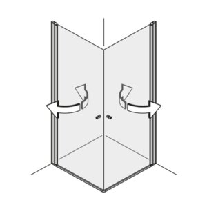 Modelle mit der Tür an einem Glas-Fixteil erlauben die Öffnung der Türe um 180° nach innen und 180° nach außen. Das ist einzigartig am Markt! Modelle mit der Tür direkt an der Wand haben einen Öffnungswinkel von 90° nach innen und außen.