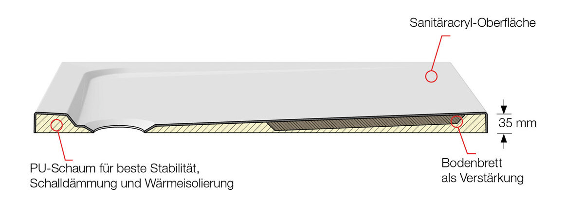 ARTFLOOR Sanitäracryl-Duschwannen mit PU Verstärkung