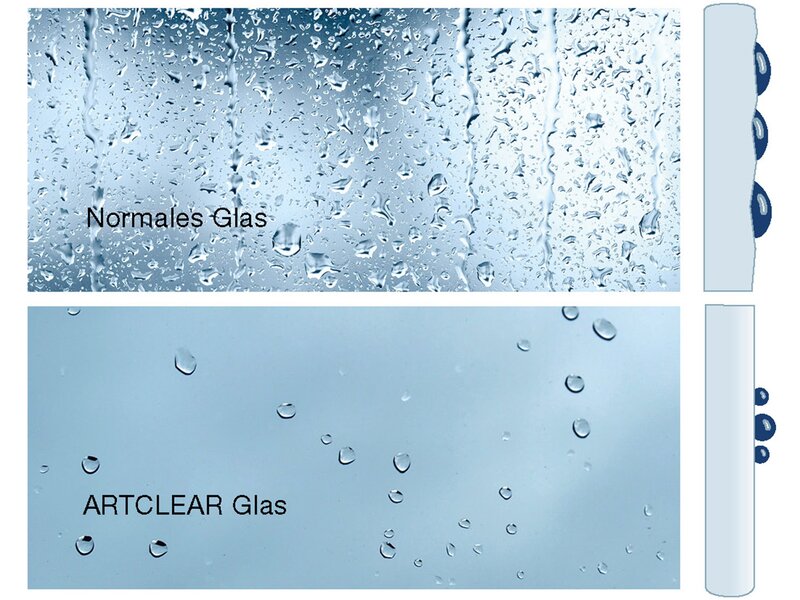 Nur bei ARTWEGER können die Drschgläser optional mit ARTCLEAR GLAS veredelt werden. Dabei wird die Glasoberfläche besonders glatt, Schmutz- und Kalkreste finden kaum Halt und können nach dem Duschen einfach abgespült werden: Das erleichtert die Reinigung erheblich. Das Besondere daran ist die Langzeit-Wirkung: Durch UV Aushärtung der Oberfläche bleibt der ARTCLEAR GLAS Effekt ein Duschenleben lang erhaletn!