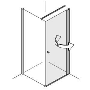 Modelle mit der Tür an einem Glas-Fixteil erlauben die Öffnung der Türe um 180° nach innen und 180° nach außen. Das ist einzigartig am Markt!  Modelle mit der Tür direkt an der Wand haben einen Öffnungswinkel von 90° nach innen und außen.