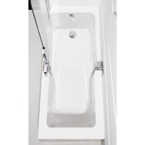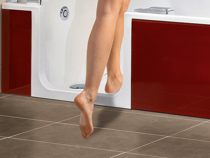 So bequem haben Sie eine Badewanne noch nie erlebt:  Einstiegshöhe 18,5 cm, kann (wie abgebildet) bis auf 5,5 cm verringert werden.
