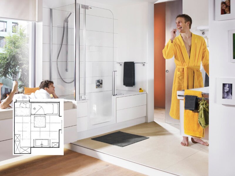 Die TWINLINE 2 passt auch in kleine Bäder. Denn mit ihrer geraden Wannenform braucht sie exakt soviel Platz wie eine normale Badewanne.