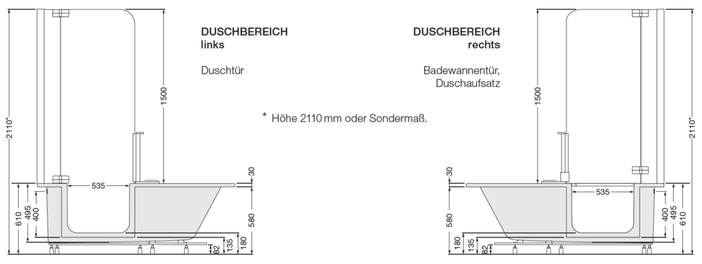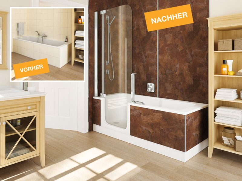 EInfach Ihre Badewanne gegen eine TWINLINE 2 tauschen. Diese braucht exakt die gleiche Fläche wie Ihre Badewanne. Und Sie bekommen mit wenig Aufwand doppelten Komfort für Ihr Zuhause - Duschen & Baden in einem!