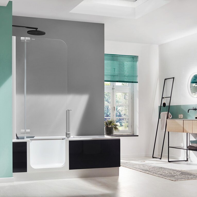 EInfach Ihre Badewanne gegen eine TWINLINE 2 tauschen. Diese braucht exakt die gleiche Fläche wie Ihre Badewanne. Und Sie bekommen mit wenig Aufwand doppelten Komfort für Ihr Zuhause - Duschen & Baden in einem!